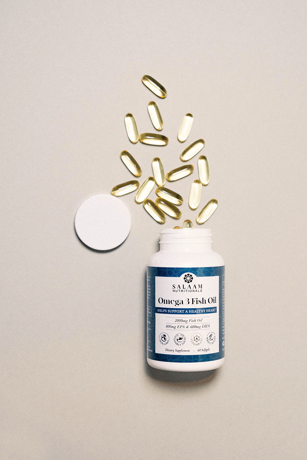 Halal Fish Oil 2000mg Omega-3 Soft Gels with EPA & DHA - 60 Count | Salaam Nutritionals